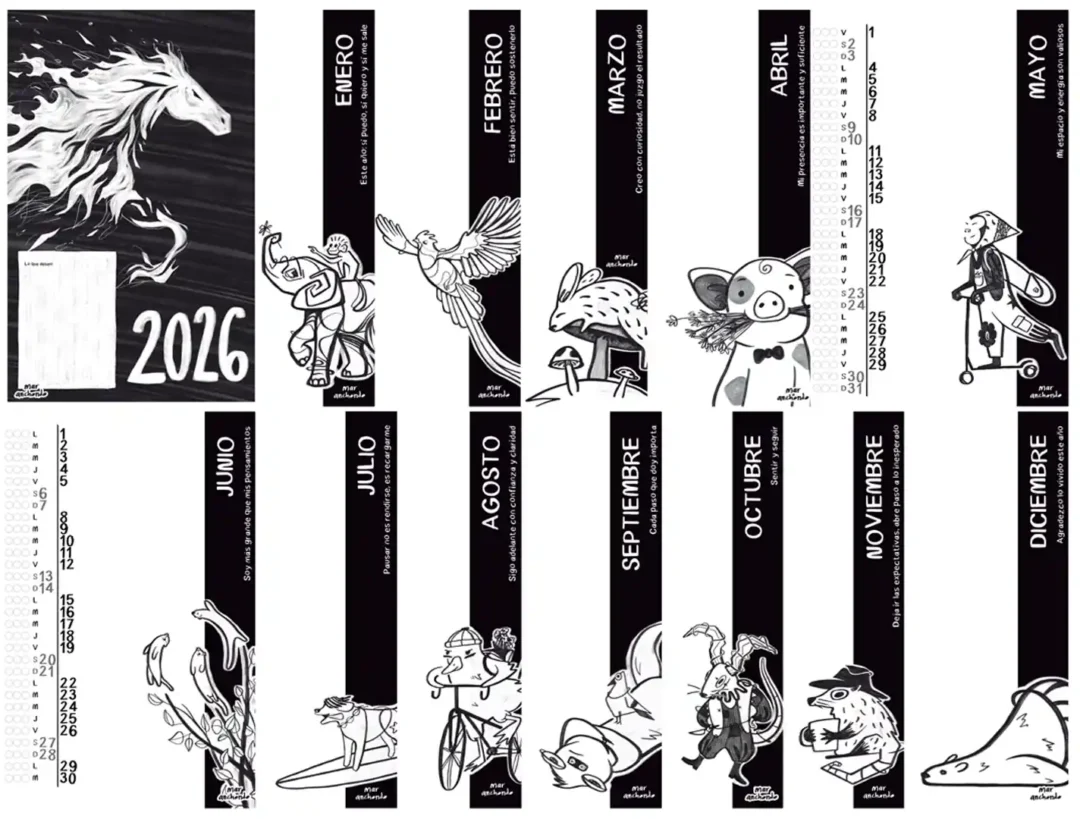 Yo tengo tu calendario!!! Lo tengo en el refri porque nos ayuda como recordatorio a mi novio y a mi. Amo que tengan los dibujos!!! Le da un toque más cool y me gusta a veces rellenarle algunos espacios en blanco que tiene 🤭🤭🤭. Y luego a veces se me olvida pero las frases que tienen a lado de los meses se vuelven visibles en momentos muy específicos que me dan calma. Son como notas mágicas.