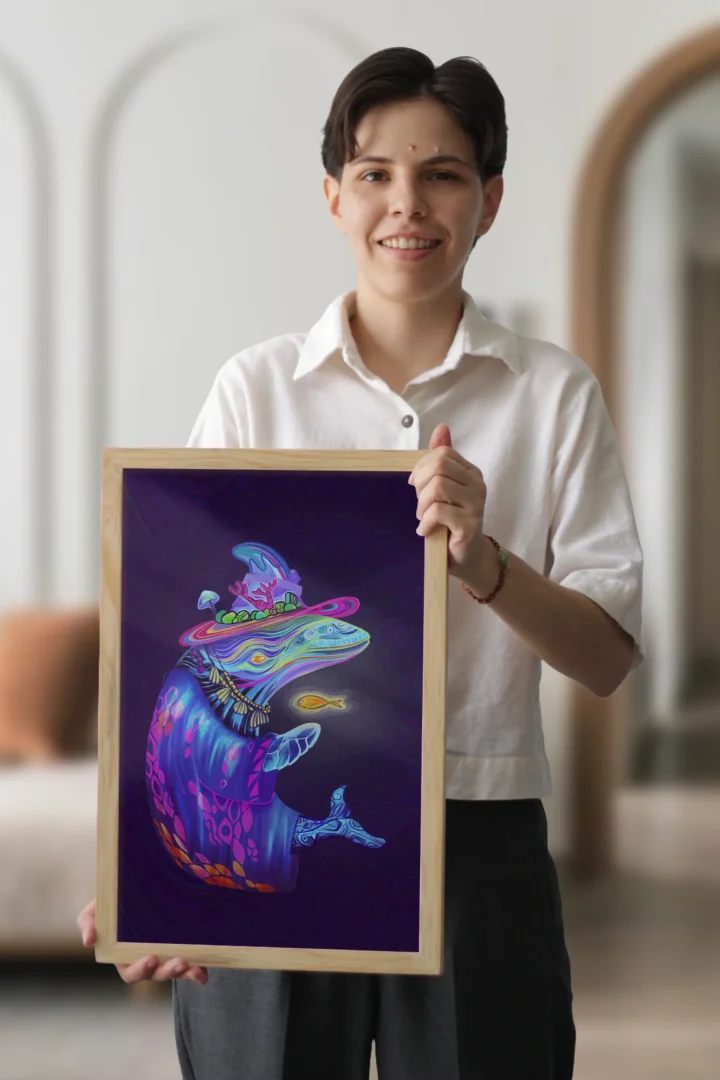 Te presento la ballena chamán una impresión Fine Art creada con técnica digital.