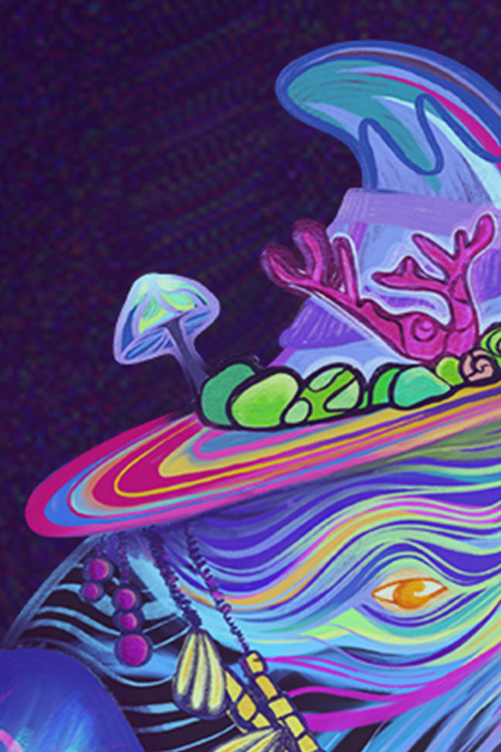 Siento que los animales marinos tienes esta energía mística increíble, por la forma en la que se mueven y la forma de sus cuerpos. Esta idea creció con muchos detalles, un sombrero de brujita, con totems, un collar de conchas, los patrones mágicos de la piel.